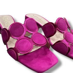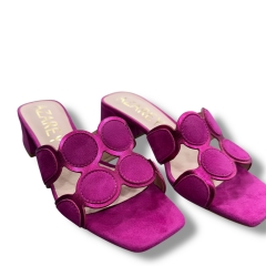 Estas sandalias elegantes en vibrante color turquesa son la mezcla perfecta de originalidad y comodidad. Su diseño con detalles circulares decorativos aporta un toque único y divertido, mientras que el tacón bajo y ancho garantiza un confort excepcional durante todo el día. Con una horma abierta y acabados de alta calidad, son ideales para complementar tus looks más casuales o sofisticados. Perfectas para ocasiones especiales o para destacar en tu día a día con estilo.