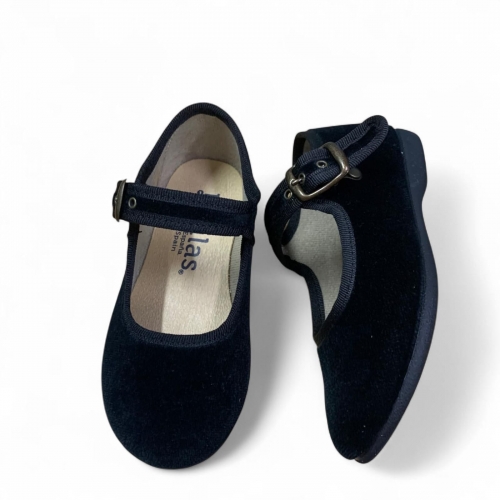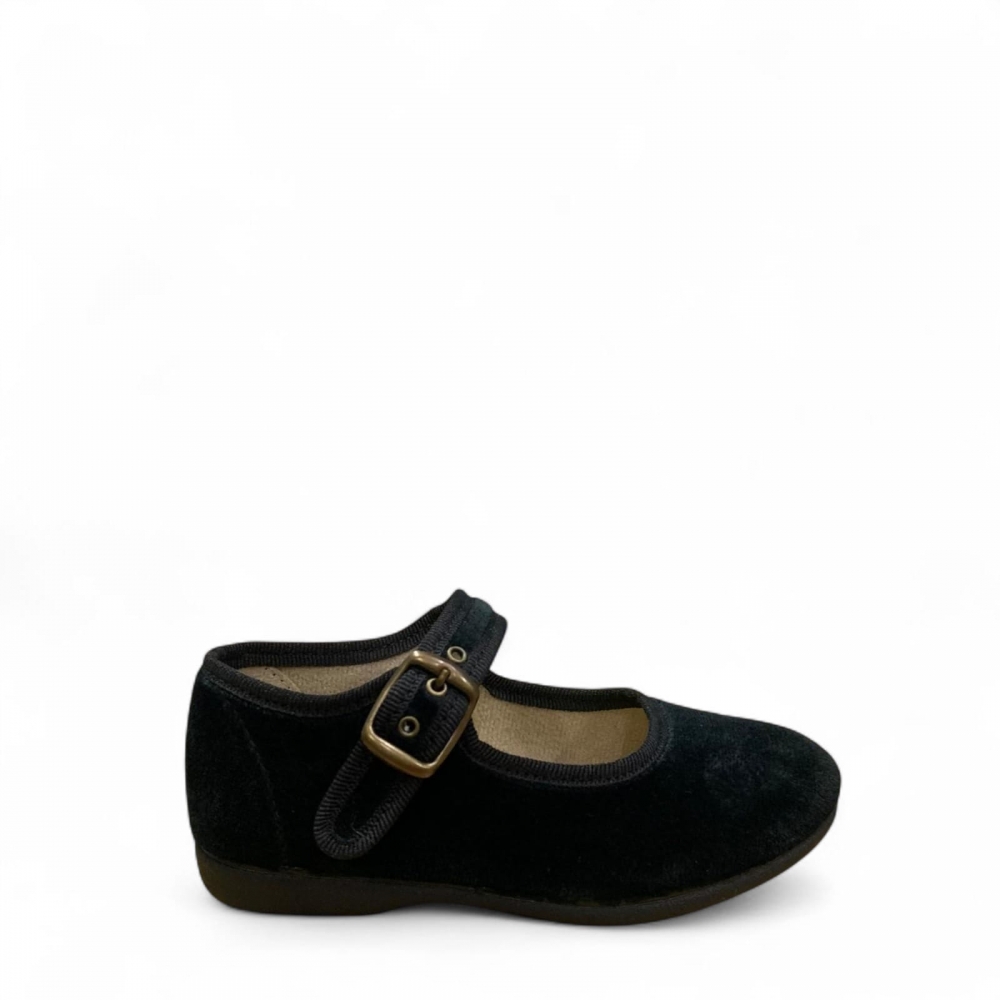 Zapato de niña estilo Mercedita con cierre en hebilla y suela de goma flexible y antideslizante.