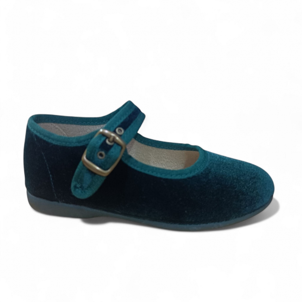 Zapato de niña estilo Mercedita con cierre en hebilla y suela de goma flexible y antideslizante.