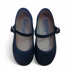 Zapato de niña estilo Mercedita con cierre en hebilla y suela de goma flexible y antideslizante.