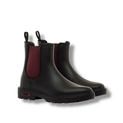 Botines de agua planos de color negro para mujer, modelo Halo de Mustang. Este diseño tipo chelsea incorpora paneles laterales elásticos con estampado de leopardo, que aportan un toque llamativo y actual. Su suela con relieve lo convierte en una opción cómoda para el uso diario. Ideal para combinar con jeans o prendas básicas, este botín es perfecto para dar un aire diferente a looks de entretiempo o días lluviosos.