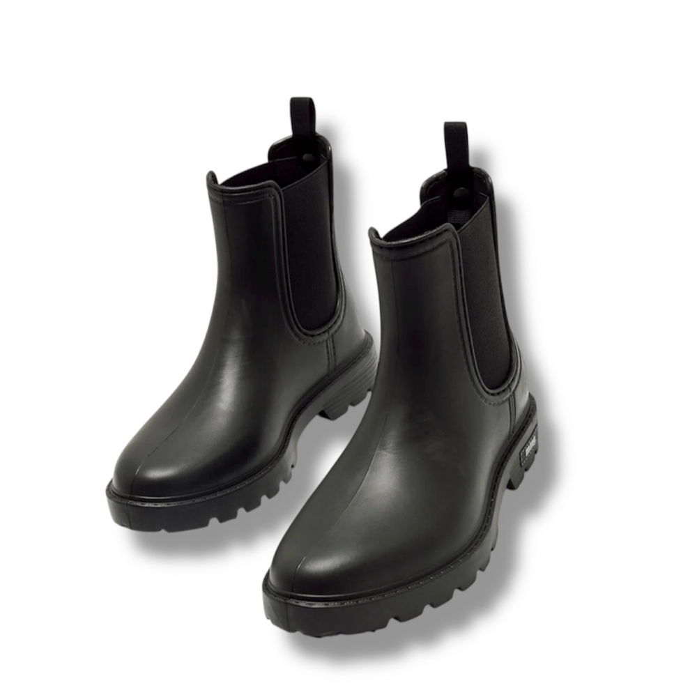 Botines de agua planos de color negro para mujer, modelo Halo de la marca Mustang estilo chelsea. Su diseño minimalista con laterales elásticos en el mismo tono crea un acabado versátil y fácil de combinar. La suela con relieve aporta confort, ideal para el uso diario. Este botín se convierte en una opción práctica para looks informales y jornadas de entretiempo, ofreciendo un estilo sencillo que nunca pasa de moda.