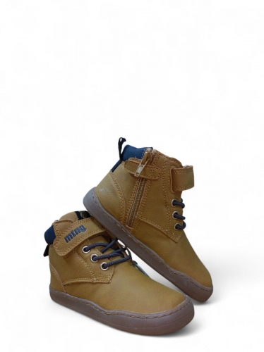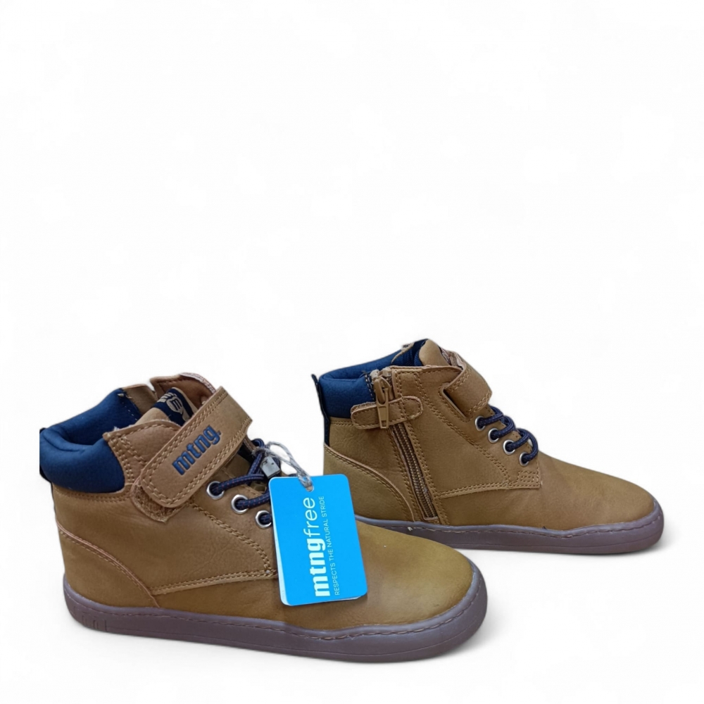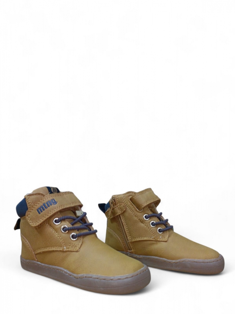 Botín de color camel para niño de la marca Mustang, modelo Free. Con estilo urbano y funcional, presenta cierre adehsivo y cordones, además de cuello acolchado negro para mayor comodidad. Diseñado y desarrollado especialmente en colaboración con el Dr. Juanjo López, traumatólogo deportivo e infantil, para respetar el desarrollo natural del pie del niño y la niña. Gracias a su puntera ancha permite el libre movimiento de los dedos dentro del zapato. Las plantillas extraíbles facilitan comprobar si la talla del calzado es la correcta para tu hijo. Además, su fácil apertura facilita que el niño pueda descalzarse y calzarse de forma autónoma. Con certificado VEGANO sellado por INESCOP, el cual garantiza que la naturaleza química principal del material no se corresponde con fibras de origen animal.
