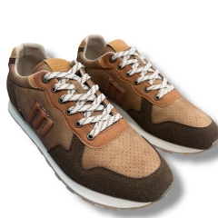Zapatillas de color azul para hombre de la marca Mustang, modelo Porland, estilo retro running. Este modelo combina diferentes texturas en el exterior y detalles en contraste en marrón, verde y amarillo que le aportan un aire deportivo y versátil. El logotipo lateral en relieve y los cordones bicolor refuerzan su personalidad, mientras que la suela tipo plataforma con acabado dentado en color caramelo añade un toque distintivo. Equipadas con plantillas con tecnología Starfit, que mejoran la comodidad en cada paso. Perfectas para quienes buscan comodidad sin renunciar al estilo casual.