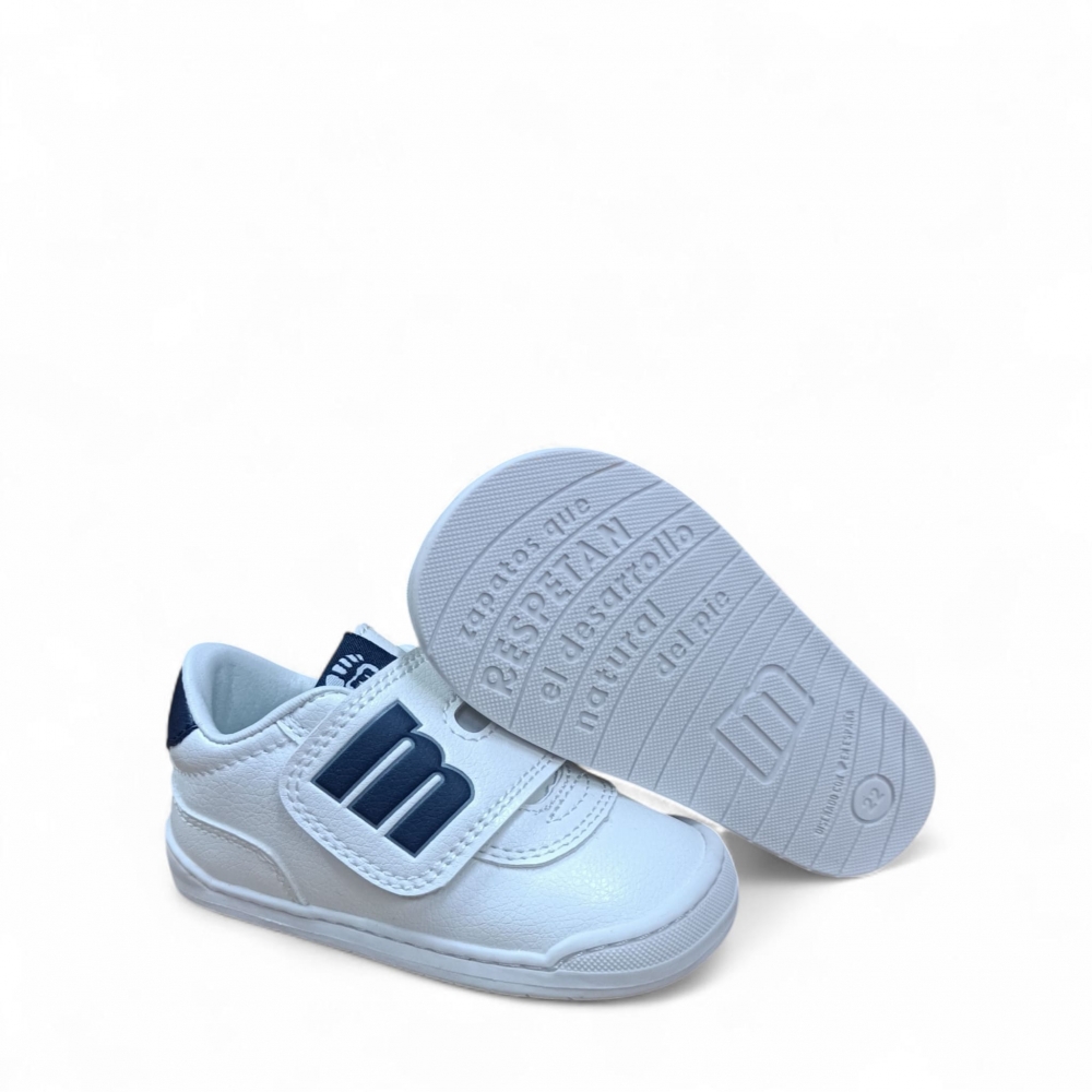 Zapatillas deportivas de color blanco para bebé de la marca Mustang, modelo Free Baby, con detalles en rosa y diseño casual. Incluyen doble cierre adherente que facilita el calce y ajuste, mientras que la “m” lateral en rosa claro aporta un detalle moderno. El talón y la lengüeta también en rosa contrastan de forma sutil con el blanco del conjunto. Además, es un modelo lavable para facilitar su mantenimiento diario. Con certificado VEGANO sellado por INESCOP, el cual garantiza que la naturaleza química principal del material no se corresponde con fibras de origen animal. Diseñada y desarrollada especialmente en colaboración con el Dr. Juanjo López, traumatólogo deportivo e infantil, para respetar el desarrollo natural del pie de los niños. Gracias a su puntera ancha permite el libre movimiento de los dedos dentro del zapato. Su suela tiene 3 mm de grosor y con zero drop (totalmente plana) respeta el natural desarrollo del pie del pequeño y sus elementos flexibles y torsionables hace que el pie del niño no esté encorsetado por la estructura del zapato. Las plantillas extraíbles facilitan comprobar si la talla del calzado es la correcta para tu hijo. Además, su fácil apertura facilita que el niño pueda descalzarse y calzarse de forma autónoma. Acompaña los primeros pasos de tu bebé con Mustang.