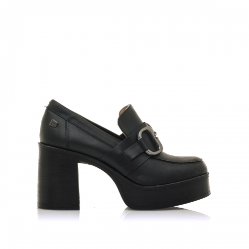 Zapato de tacón Sixties Mustang para mujer, con diseño en piel serraje de color taupe de estilo mocasín, plataforma efecto madera y detalle de aplique en la pala. Será tu nuevo básico favorito para realzar cualquier look, ir a la oficina o tomar algo con tus amigas.