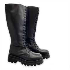 Bota ALTA  de estilo militar con cierre acordonado y suela track. Estas botas beige están fabricadas con pieles de primera calidad.