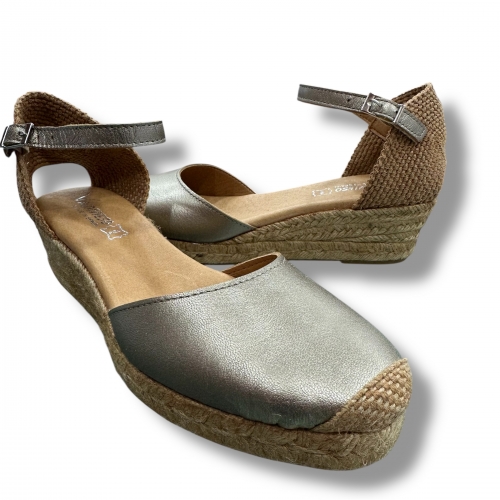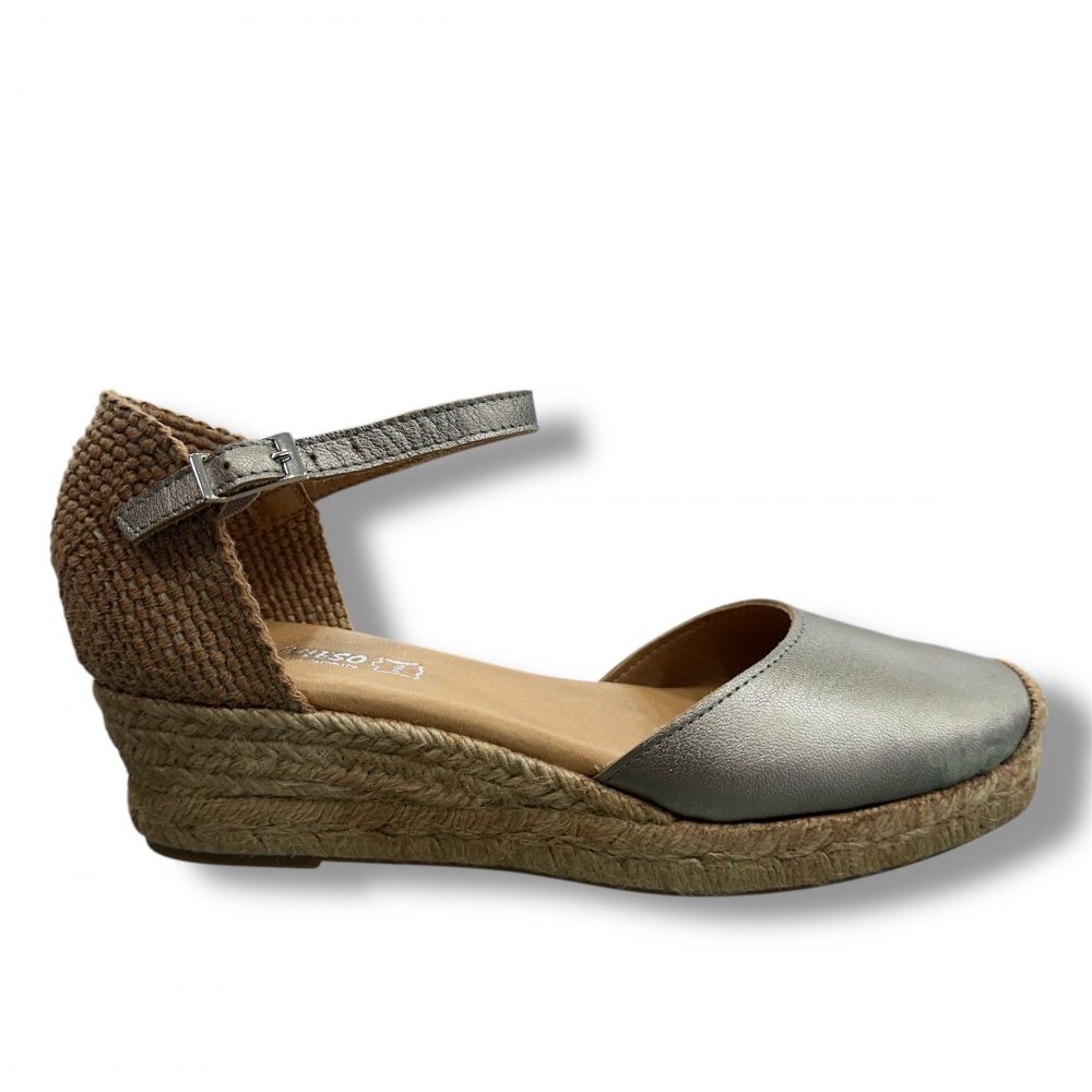 Cuñas de esparto tipo alpargatas fabricadas en piel natural.