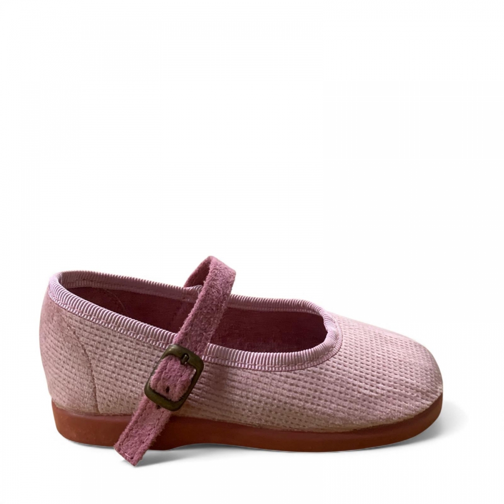 Zapato de niña estilo Mercedita con cierre en hebilla y suela de goma flexible y antideslizante.