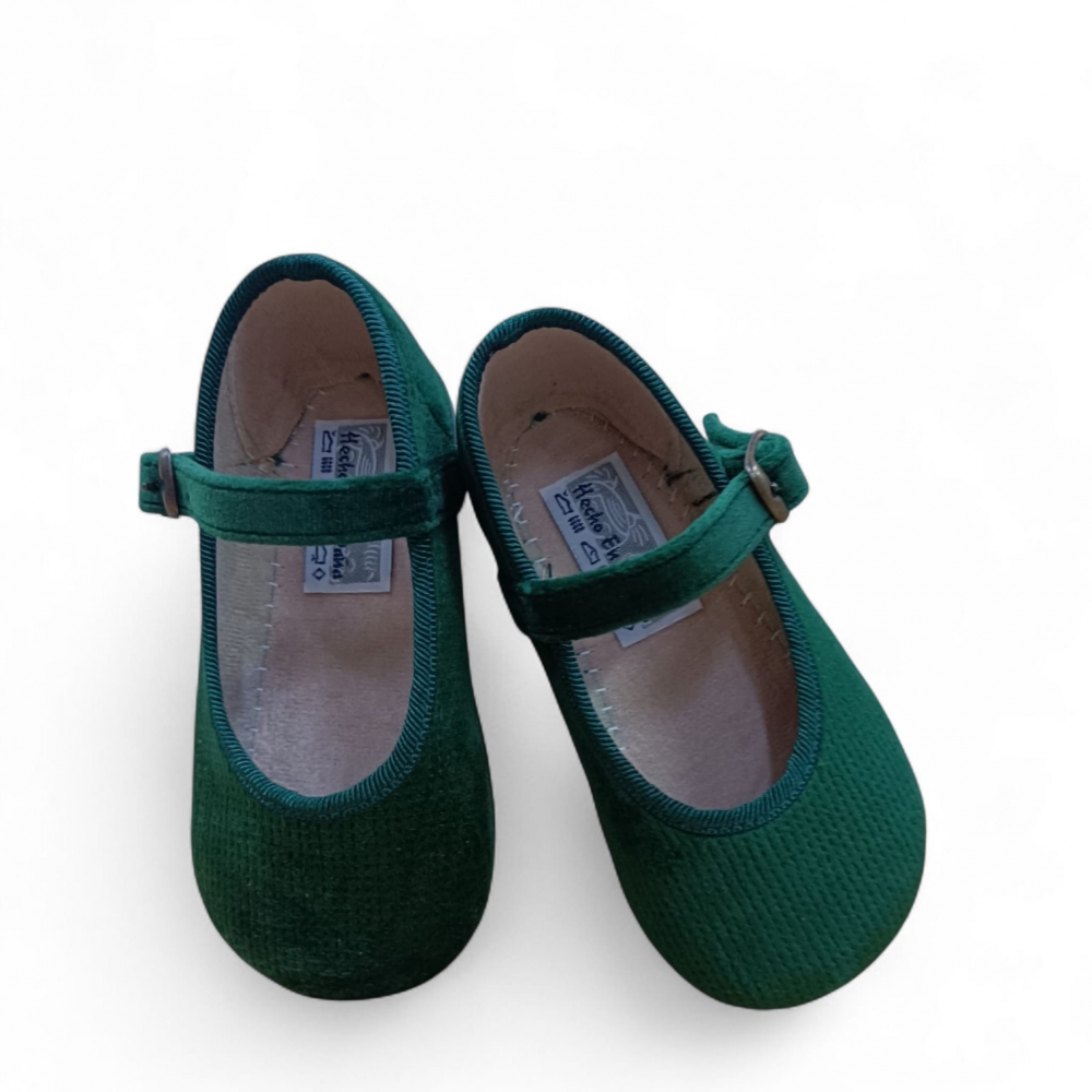 Zapato de niña estilo Mercedita con cierre en hebilla y suela de goma flexible y antideslizante.