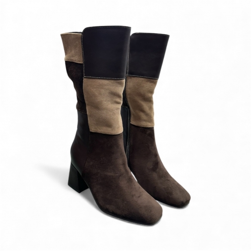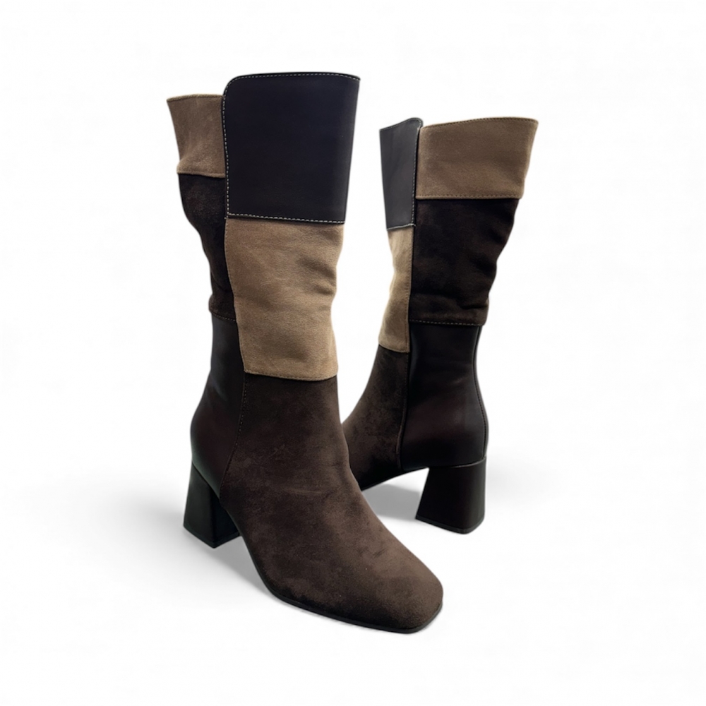 Botas parches diferentes marrón con tacón.