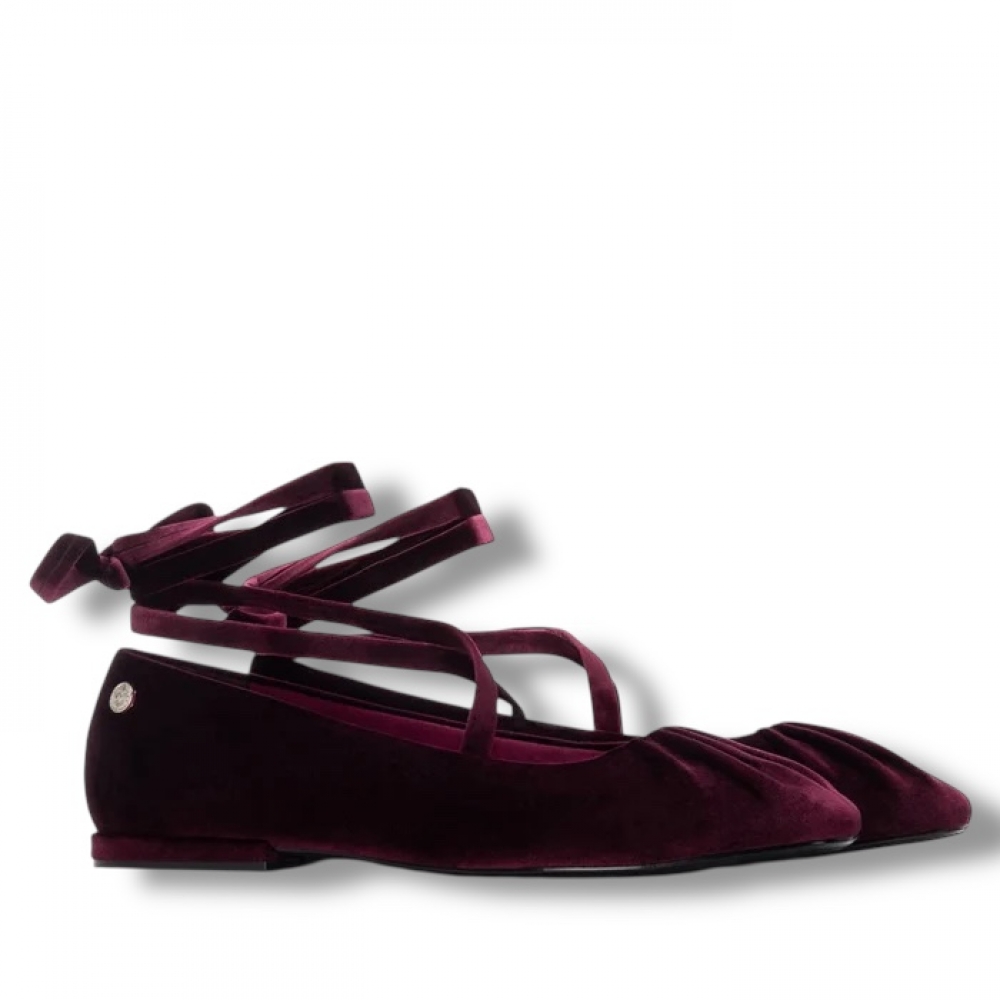 Bailarina de mujer, de la marca Xti. Fabricada en material textil de terciopelo. Suave y elegante al tacto. Diseñada con tiras para sujeción al tobillo, que proporcionan un ajuste seguro y cómodo. Ideal para un look chic y sofisticado, perfecta para ocasiones especiales o para añadir un toque de glamour a tu estilo diario. Este modelo ha obtenido el certificado vegano por la organización mundial PETA (Organización de los derechos de los animales).