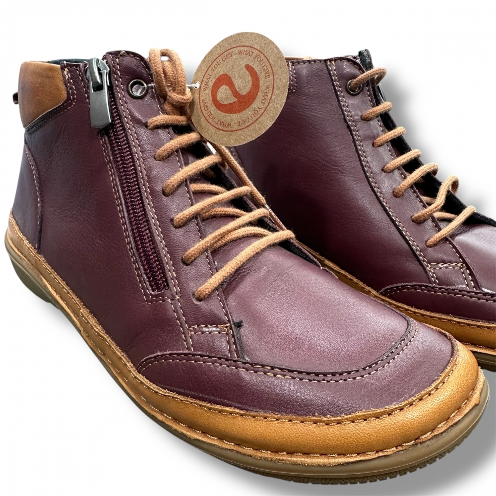 Botines de piel fabricados en piel natural y plantilla gel confort extraible.