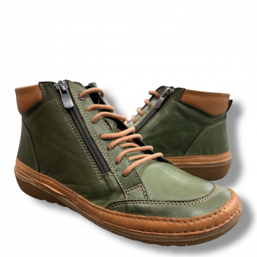 Bota fabricada en piel natural con suela de goma antideslizante y plantilla gel confort.