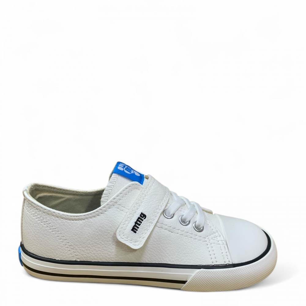 Zapatilla de color blanco para niño modelo Free de Mustang. Su estilo casual y su sistema de cierre adhesivo con cordones elásticos facilita el calce autónomo. El diseño tipo polipiel con suela de goma aporta un estilo urbano y versátil, fácil de combinar con cualquier conjunto. Diseñado y desarrollado especialmente en colaboración con el Dr. Juanjo López, traumatólogo deportivo e infantil, para respetar el desarrollo natural del pie del niño y la niña. Gracias a su puntera ancha permite el libre movimiento de los dedos dentro del zapato. Las plantillas extraíbles facilitan comprobar si la talla del calzado es la correcta para tu hijo. Además, su fácil apertura facilita que el niño pueda descalzarse y calzarse de forma autónoma. Con certificado VEGANO sellado por INESCOP, el cual garantiza que la naturaleza química principal del material no se corresponde con fibras de origen animal.