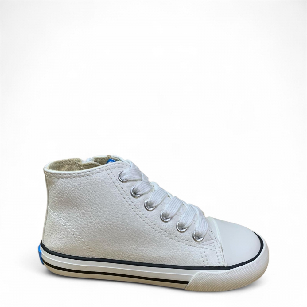 Zapatillas abotinadas de color blanco para niños, modelo Free de Mustang. Estas bambas combinan un diseño casual con funcionalidad para el día a día. Su caña media y cierre lateral con cremallera facilitan el calce, mientras que el ajuste mediante cordones añade un toque clásico a un modelo pensado para ofrecer comodidad. Diseñado y desarrollado especialmente en colaboración con el Dr. Juanjo López, traumatólogo deportivo e infantil, para respetar el desarrollo natural del pie del niño y la niña. Gracias a su puntera ancha permite el libre movimiento de los dedos dentro del zapato. Las plantillas extraíbles facilitan comprobar si la talla del calzado es la correcta para tu hijo. Además, su fácil apertura facilita que el niño pueda descalzarse y calzarse de forma autónoma. Con certificado VEGANO sellado por INESCOP, el cual garantiza que la naturaleza química principal del material no se corresponde con fibras de origen animal.