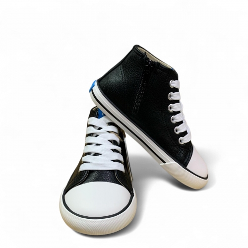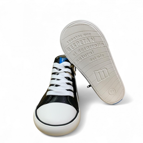 Zapatillas estilo botín para niños, modelo Free de color negro de Mustang. Su diseño de caña media con cierre lateral mediante cremallera y ajuste de cordones permite calzarlos fácilmente. Diseñado y desarrollado especialmente en colaboración con el Dr. Juanjo López, traumatólogo deportivo e infantil, para respetar el desarrollo natural del pie del niño y la niña. Gracias a su puntera ancha permite el libre movimiento de los dedos dentro del zapato. Las plantillas extraíbles facilitan comprobar si la talla del calzado es la correcta para tu hijo. Además, su fácil apertura facilita que el niño pueda descalzarse y calzarse de forma autónoma. Con certificado VEGANO sellado por INESCOP, el cual garantiza que la naturaleza química principal del material no se corresponde con fibras de origen animal.