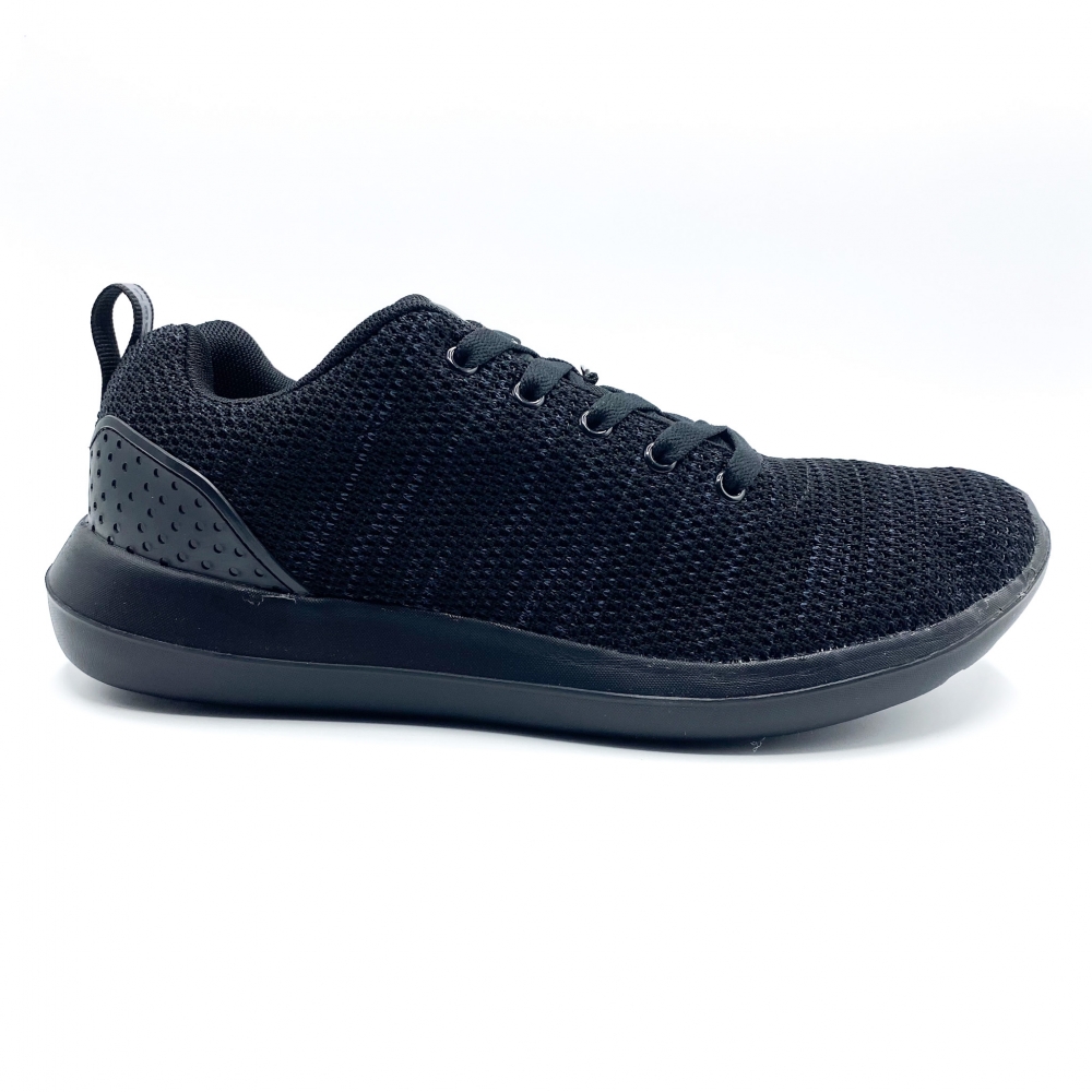 Deportivo negro básico para hombre, fabricado en material textil con plantilla confort gel super ligero y flexible.