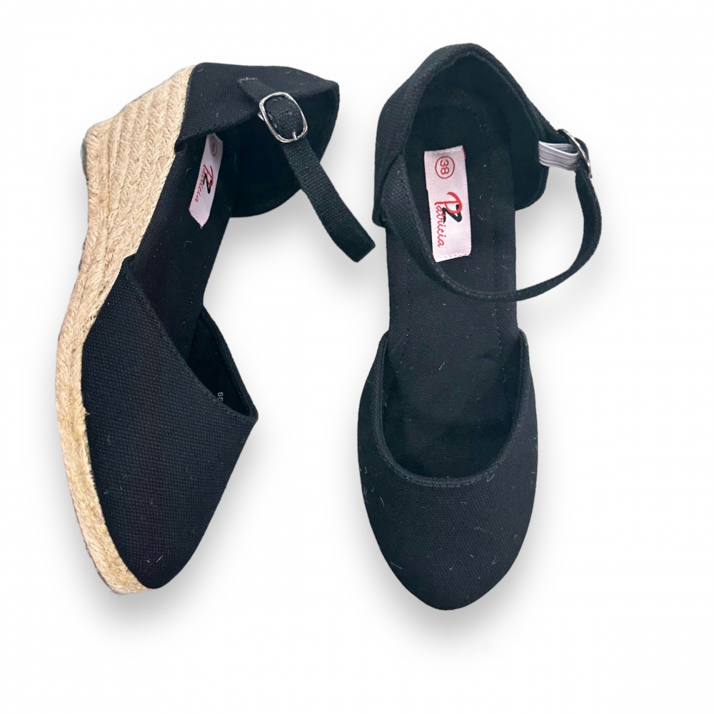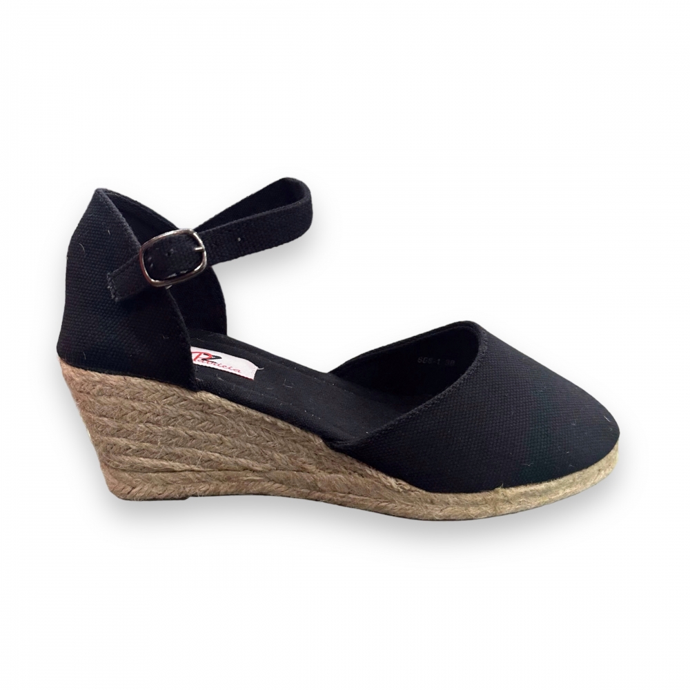 Cuña de esparto tipo alpargata, fabricada en lona confortable y una altura de 7 cm.