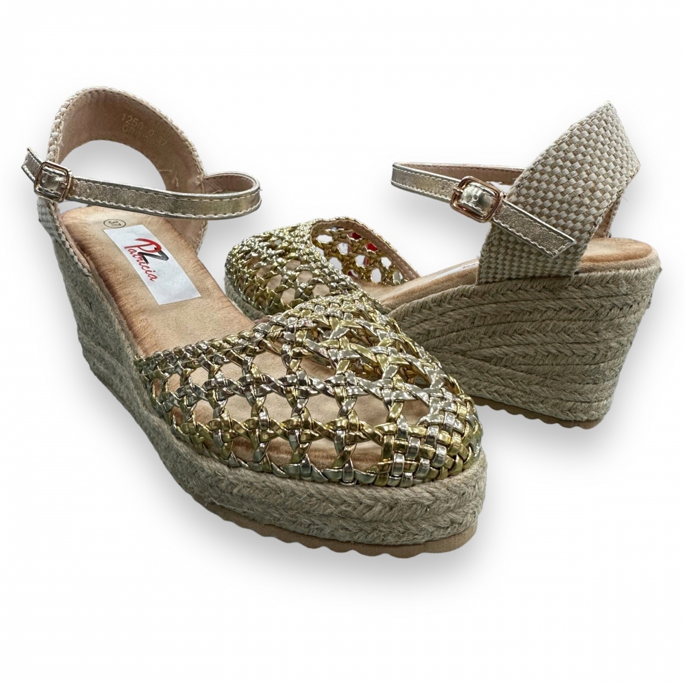 Alpargata de esparto con acabados metalizados y plantilla de gel