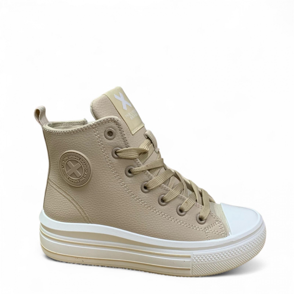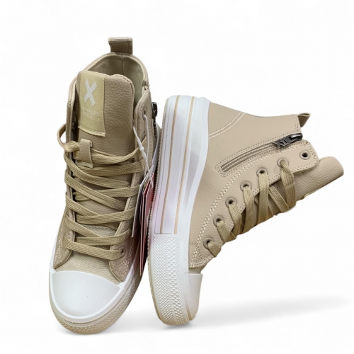 Botín de niña, de la marca Xti Kids. Fabricado en material que imita a la piel. Cierre mediante cremallera con cordones regulables. Botín de plataforma con suela de goma antideslizante. Este modelo ha obtenido el certificado vegano por la organización mundial PETA (Organización de los derechos de los animales).