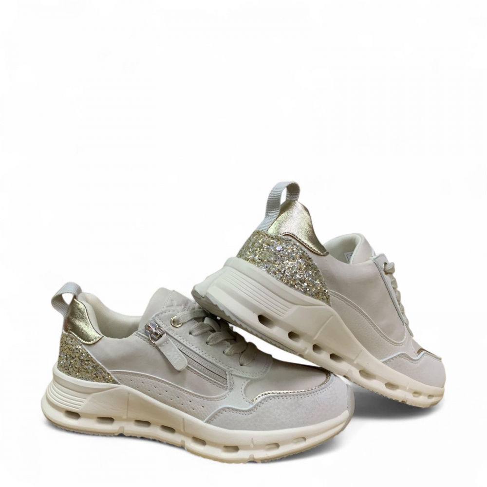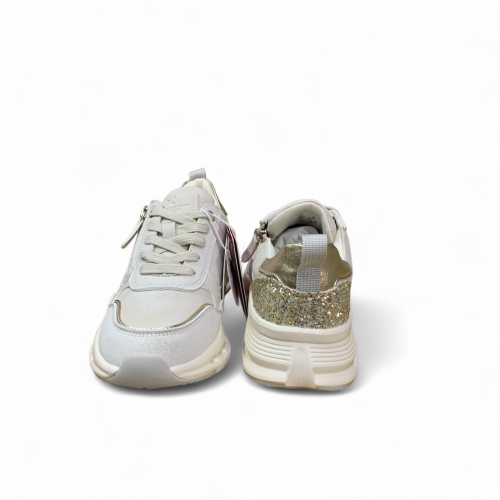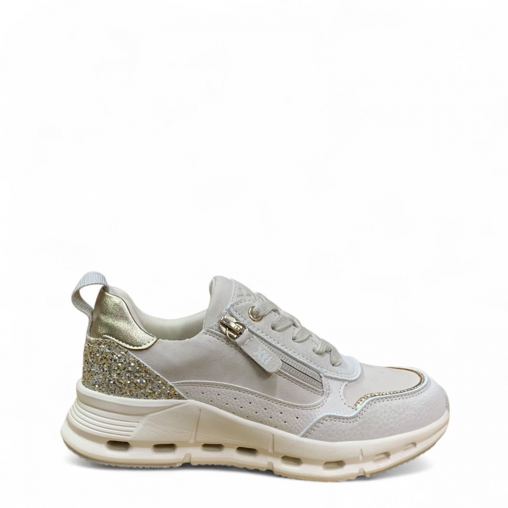 Zapatilla de niña, de la marca Xti Kids. Fabricada en material sintético con detalles metalizados y glitter que aportan un toque brillante y moderno. Cuenta con cremallera lateral para facilitar el calce. Suela deportiva con diseño innovador que incluye pequeños agujeros, ofreciendo mayor ligereza. Perfecta para un estilo casual y funcional. Este modelo ha obtenido el certificado vegano por la organización mundial PETA (Organización de los derechos de los animales).