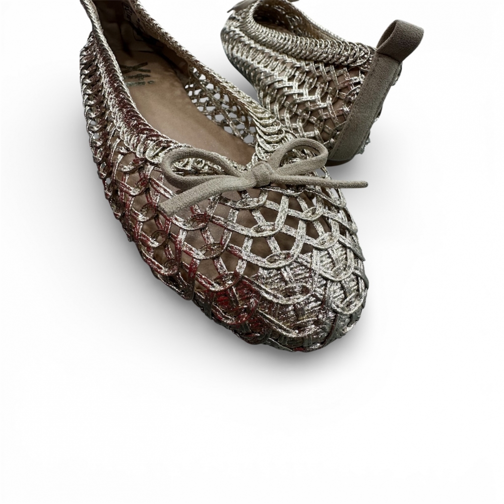 Zapato de mujer, de la marca Xti. Bailarina plana, fabricada en material con acabado tipo rafia, que aporta un toque natural y veraniego al diseño. Incorpora un detalle de lazo en la parte delantera, que añade un aire femenino y delicado. Un modelo cómodo y versátil, ideal para looks casuales o más arreglados. Cuenta con suela antideslizante, para mayor seguridad en cada paso. Este modelo ha obtenido el certificado vegano por la organización mundial PETA (Organización de los derechos de los animales).